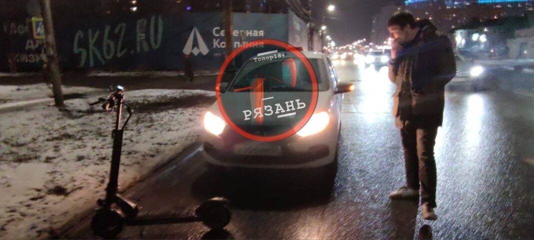 На улице Есенина в Рязани легковой автомобиль сбил курьера на электросамокате. Подробности инцидента сообщает телеграм-канал «Топор 18+ Рязань».