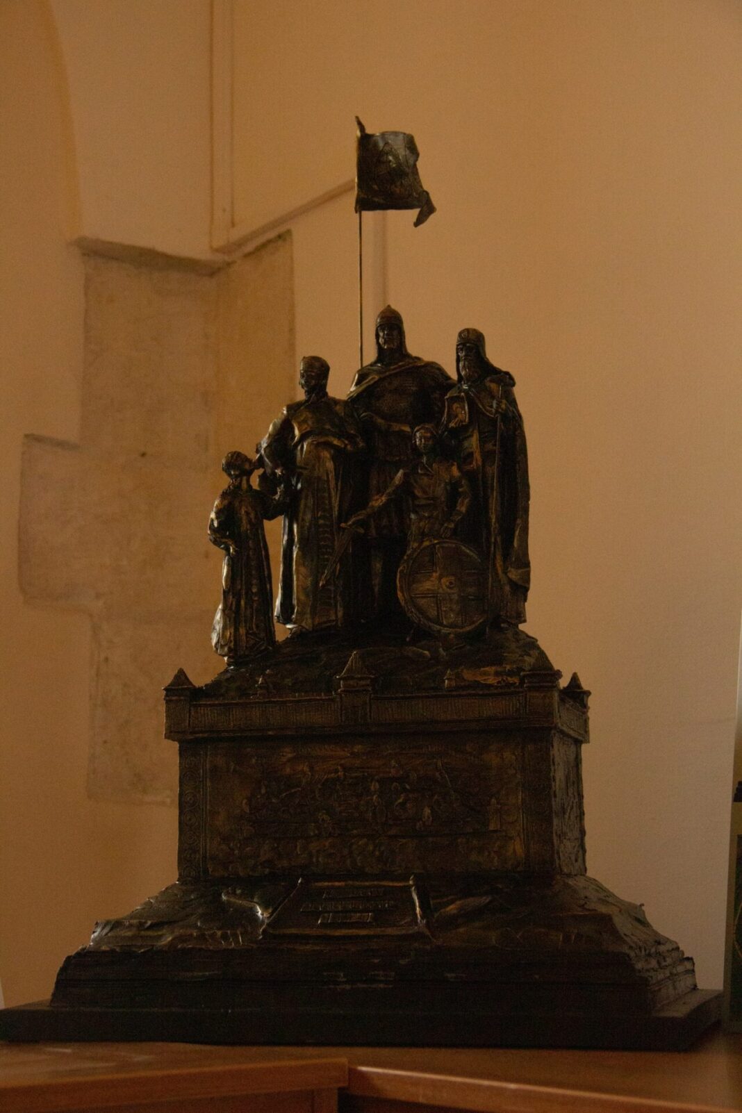 Работа Молчановского представляет собой вертикальную композицию. Пять человек стоят на крепостной стене, символизируя 5 дней обороны древнего города.