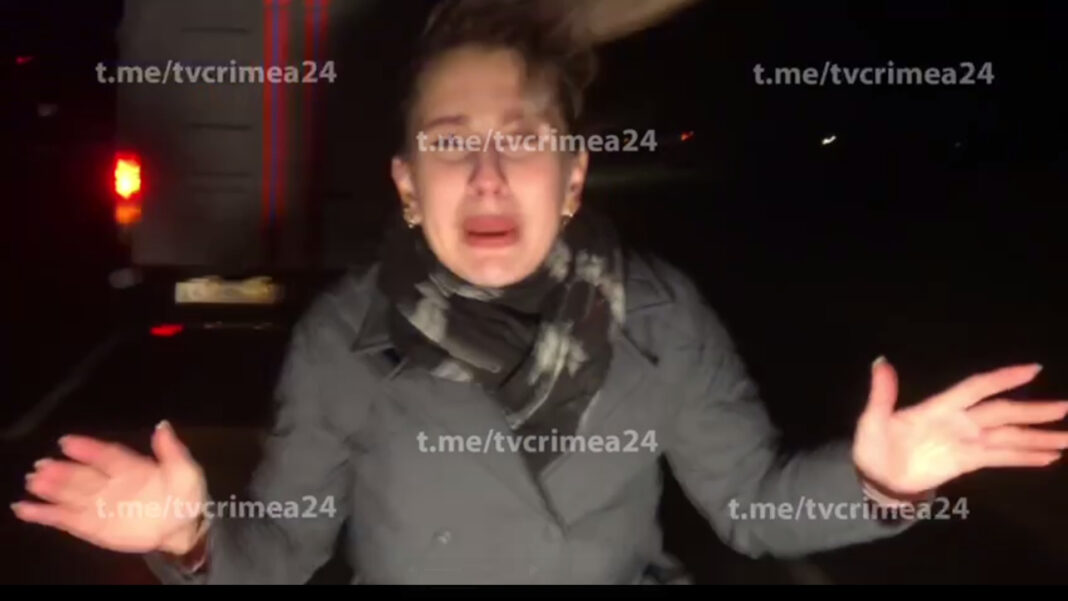Во время записи видео на трассе Симферополь — Евпатория журналистку «Крым 24» ветер практически снёс с ног. Видео публикует телеграм-канал СМИ.