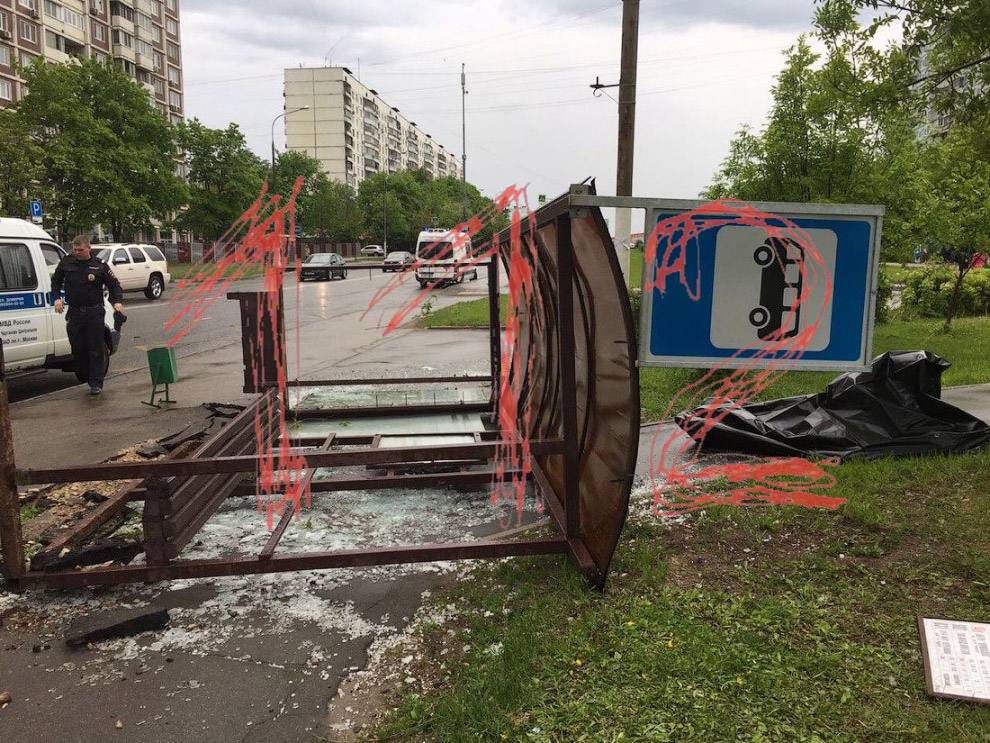 Сообщается уже о более чем двух десятках повреждённых машин. Ветер в Москве в порывах достигает 25 метров в секунду.