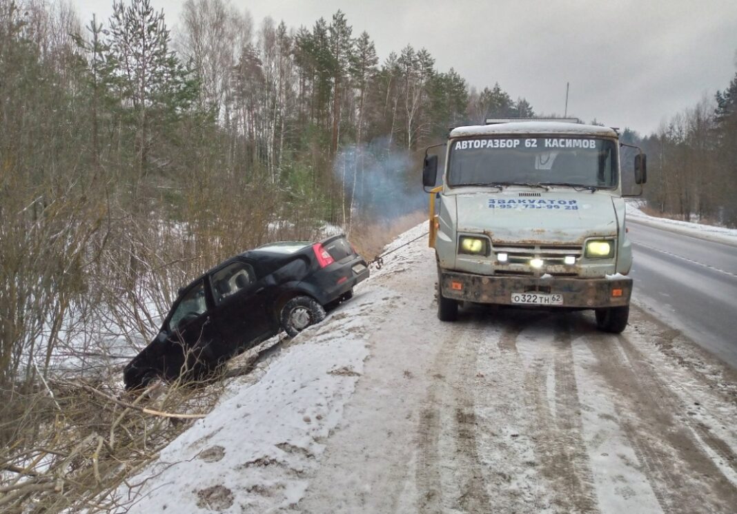 В Касимовском районе Рязанской области в кювет съехал легковой Renault. Фото появилось в группе Автоклуб города Касимов 27 ноября около 15 часов.