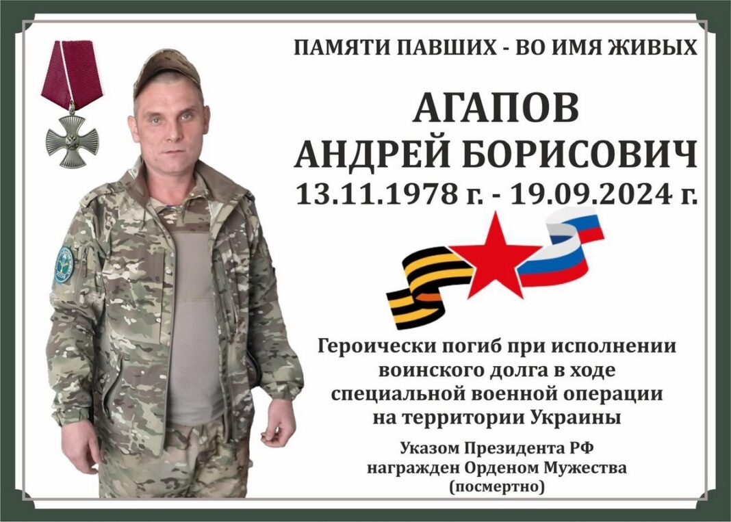 Андрей Агапов служил в десантных войсках. В июле 2023 года мужчина подписал контракт с Минобороны. Погиб в ходе выполнения боевой задачи. Похоронили участника СВО 27 сентября. Посмертно он представлен к ордену Мужества.
