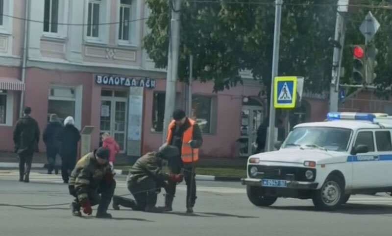 Люки заваривают на пересечении Первомайского проспекта и улицы Маяковского.