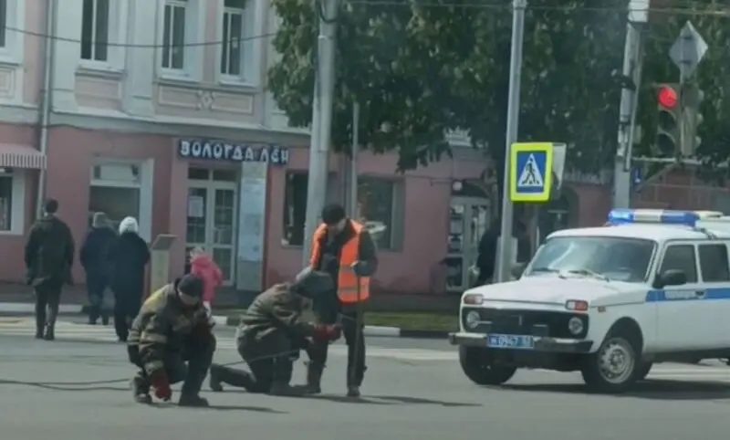 В центре Рязани рабочие заварили канализационные люки на дороге. Видео опубликовал telegram-канал «аТипичная Рязань-2».