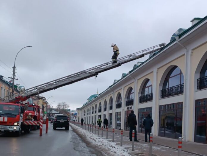 Днём в понедельник, 6 февраля, в Торговых рядах на площади Ленина в Рязани работали пожарные расчёты. Видео РИА «7 новостей» прислал очевидец.