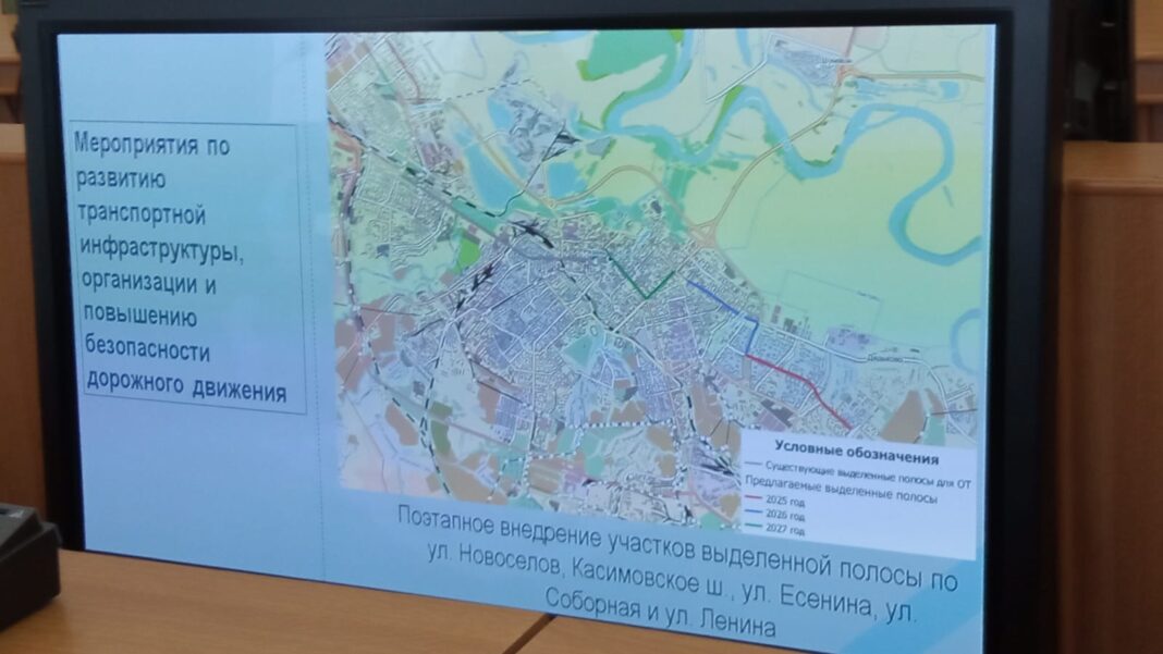 На презентации новой транспорта модели Рязани в администрации города сообщили, что полоса общественного транспорта может быть организована на Касимовском шоссе, улицах Новосёлов, Ленина, Соборной и Есенина. Предположительно, работы по организации там выделенных полос будут проводиться до 2027.