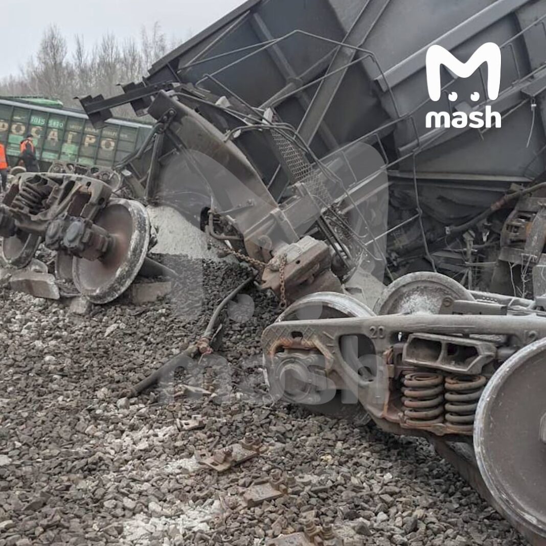 Как пишет Mash, рассматривается версия, что железнодорожное полотно было подорвано перед локомотивом. На это указывают пробитые окна в кабине машиниста. Также по информации канала, после схода грузового состава возбуждено уголовное дело по статье «Теракт».